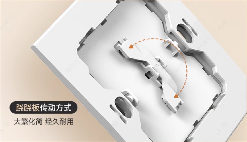 日常使用頻率很高的開關(guān)插座,細節(jié)的設(shè)計會影響使用感、體驗感,從而影響生活品質(zhì)和心情。正泰X5開關(guān)創(chuàng)新傳動方式,“蹺蹺板”傳動化簡為繁,加持不到3°的小擺角設(shè)計,開合手感輕巧,聲音小而清脆。開/關(guān)只需輕輕一按,通過4萬次按壓檢測,經(jīng)久耐用。